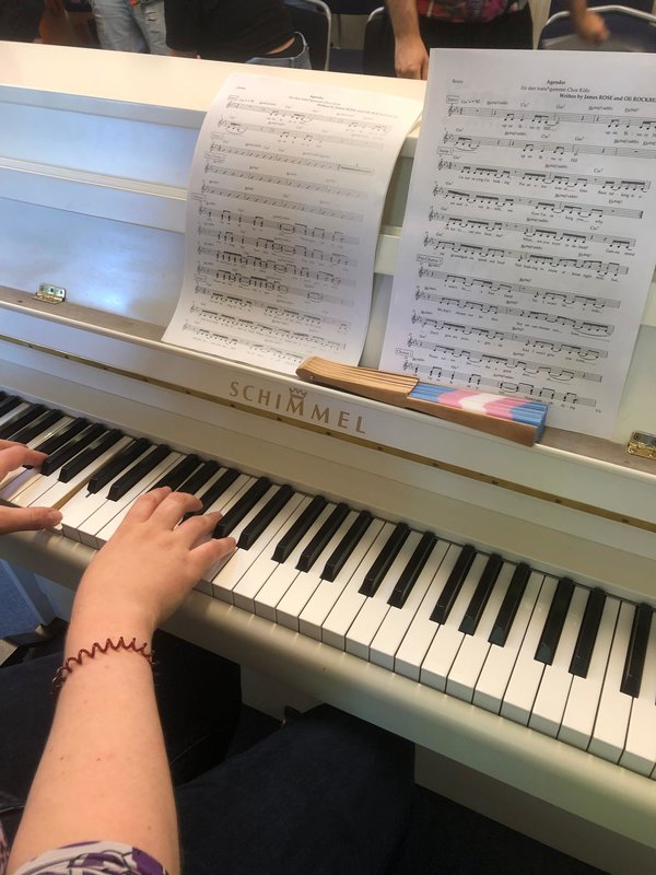 Im Zentrum des musikalischen Arbeitens stand der Song „Agender“ von Brave James und Oli Rockberger. In einer ersten gemeinsamen Probe wurde der Refrain dreistimmig erarbeitet. Besonders der Moment, als die drei Stimmen erstmals zusammenklangen, wurde von vielen Teilnehmenden im Nachgang als berührend hervorgehoben.